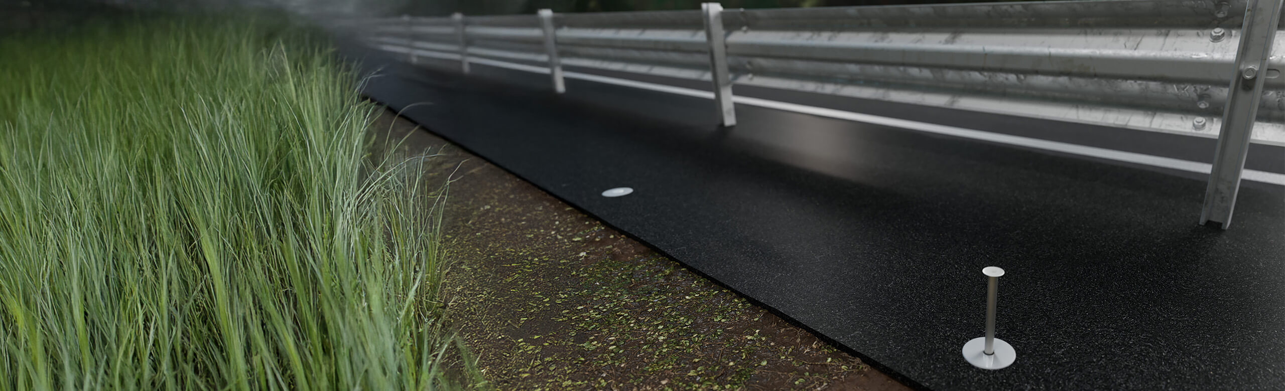 REGUPOL vegetation control 767 fire is a tried and tested product for preventing the growth of unwanted vegetation. The elimination of UV light inhibits the growth of plants underneath the mats. At the same time, the mats remain permeable to water, so that microbial soil life is preserved and erosion is prevented. This method eliminates the need to use herbicides, prevents unwanted vegetation and makes regular and costly mowing unnecessary.